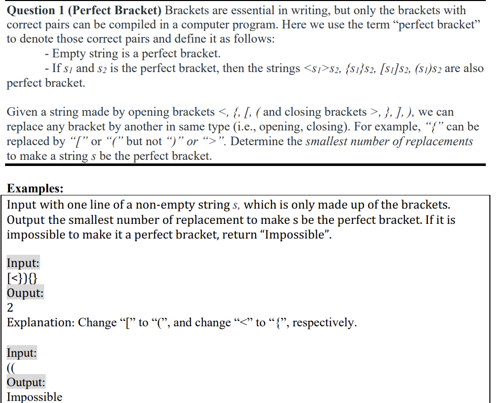 Solved Question 1 Perfect Bracket Brackets Are Essential Chegg Com